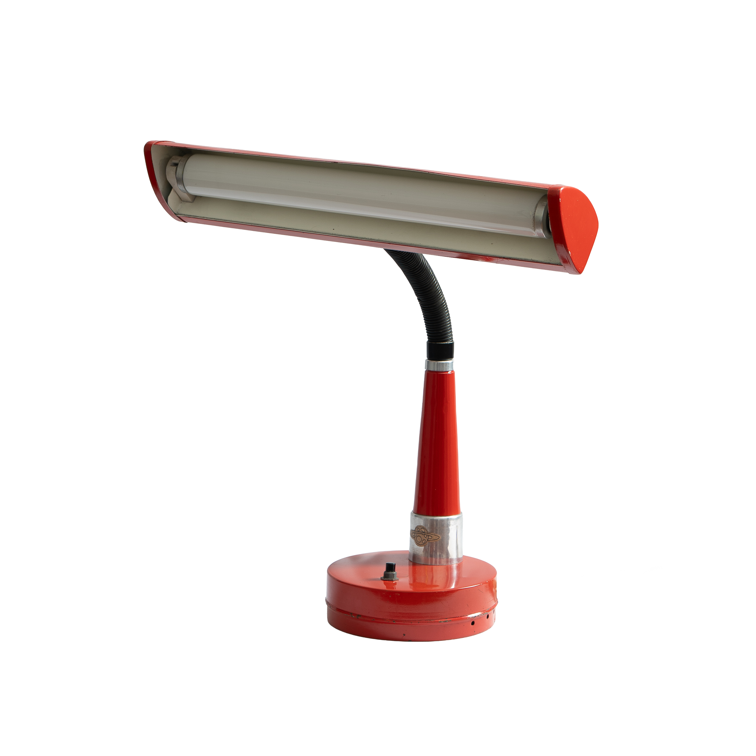 Lámpara de mesa de metal y tubo de luz. Medidas: 50 x 40 cm Buen estado de conservación con faltas. Procedencia: Colección particular