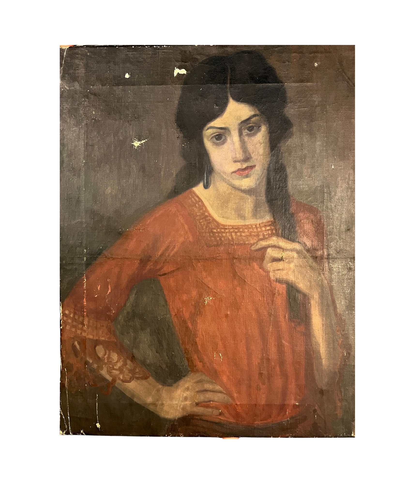 Óleo sobre tela Medidas: 58 x 44.5 cm Buen estado de conservación con faltas.